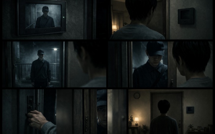 (さいきん、まいにちおなじじかんにいんたーほんがなる。) 最近、毎日同じ時間にインターホンが鳴る。 (よるの9じちょうど。) 夜の9時ちょうど。 (もにたーをみると、いつもおなじはいたついんがたっている。) モニターを見ると、いつも同じ配達員が立っている。 (でも、にもつはもっていない。) でも、荷物は持っていない。 (きみがわるくてむししていたけど、) 気味が悪くて無視していたけど、 (あまりにまいにちくるので、あるひついにでてしまった。) あまりに毎日来るので、ある日ついに出てしまった。 (どあをあけると、はいたついんはむひょうじょうでいった。) ドアを開けると、配達員は無表情で言った。 (「やっとでてくれましたね」) 「やっと出てくれましたね」 (「にもつはないですよね?」) 「荷物は…ないですよね?」 (そうきくと、はいたついんはゆっくりくびをかしげた。) そう聞くと、配達員はゆっくり首をかしげた。 (「ありますよ。ずっとまえから」) 「ありますよ。ずっと前から」 (そういって、はいたついんはてもとのたんまつをこちらにむけた。) そう言って、配達員は手元の端末をこちらに向けた。 (そこにはこうひょうじされていた。) そこにはこう表示されていた。 (「はいたつかんりょう:うけとりにんほんにん」) 『配達完了:受取人 本人』 (そのしゅんかん、うしろのへやのなかから) その瞬間、後ろの部屋の中から (いんたーほんのおとがなった。) インターホンの音が鳴った。