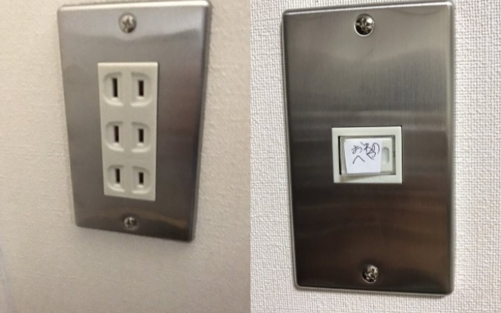 背景は主の部屋のコンセントと電気のスイッチです